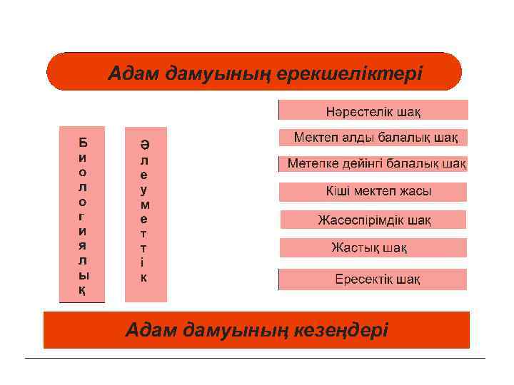 Адам даму субъектісі ретінде Жалпы дене дамуы Интелектуалдық даму Адамгершіліктік даму Эмоционалдық даму Эстетикалық даму