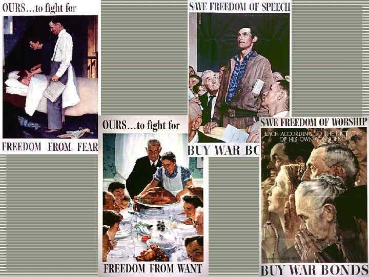 ПРЕЗИДЕНТ ФРАНКЛИН РУЗВЕЛЬТ, ЧЕТЫРЕ СВОБОДЫ, 1941 “Первой является свобода слова и самовыражения. Второй – свобода каждого человека поклоняться Богу так, как он хочет. Третьей – свобода от нужды, которая в общемировых терминах означает экономическое понимание, которое обеспечит каждой нации здоровую, мирную жизнь для всех людей. Четвертой является свобода от страха. . . ”