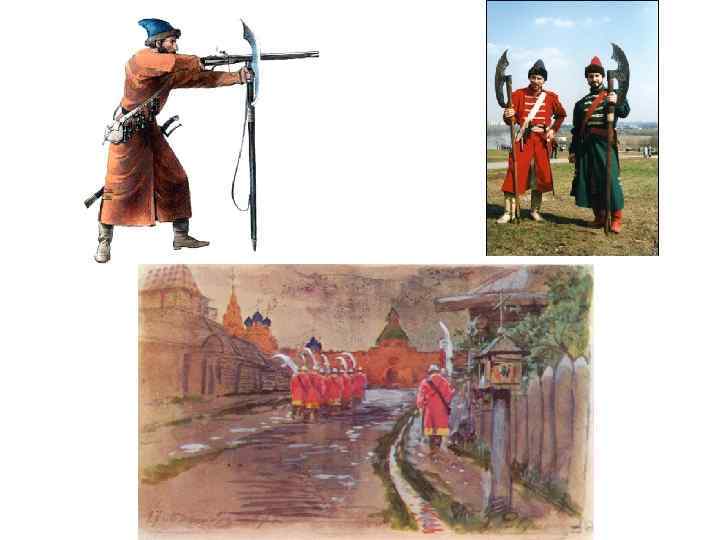 Военные реформы: • • • ядро армии составляло дворянское ополчение. Под Москвой была посажена на землю "избранная тысяча" – 1070 провинциальных дворян, которые, по замыслу царя, должны были стать его опорой; впервые было составлено Уложение о службе; вотчинник или помещик мог начинать службу с 15 лет и передавать ее по наследству; со 150 десятин земли и боярин, и дворянин должны были выставлять одного воина и являться на смотры "конно, людно и оружино"; в 1550 г. вместо отряда пищальников (появившихся в начале XVI в. ) создается постоянное стрелецкое войско (на первых порах стрельцов набрали три тысячи человек); в армию стали привлекать иностранцев (число которых было незначительно); для несения пограничной службы привлекалось казачество; бояре и дворяне, составлявшие ополчение, назывались "служилыми людьми по отечеству", т. е. по происхождению. Другую группу составляли "служилые люди по прибору" (т. е. по набору). Кроме стрельцов, туда входили пушкари (артиллеристы), городская стража, близки к ним были казаки. Тыловые работы (обоз, строительство сооружений) выполняла "посоха" – ополчение из числа черносошных монастырских крестьян и посадских людей; на время военных походов ограничивалось местничество. В середине XVI в. был составлен официальный справочник – "Государев родословец", упорядочивший местнические споры.