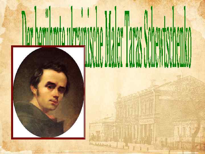 T. H. Schewtschenko begann schon in seiner Kindheit zu malen. Als er beim Herrn Engelhardt als Kammerdiener diente, zeichnete er primitive Bilder ab, das waren Bleistiftzeichnungen. Довго те діялось. Ще в школі, Таки в учителя – дяка, Гарненько вкраду п’ятака – Бо я було трохи не голе. Таке убоге – та й куплю Паперу аркуш. І зроблю Маленьку книжечку. Хрестами І візерунками з квітками Кругом листочки обведу. Та й списую Сковороду Або “Три царіє со дари”