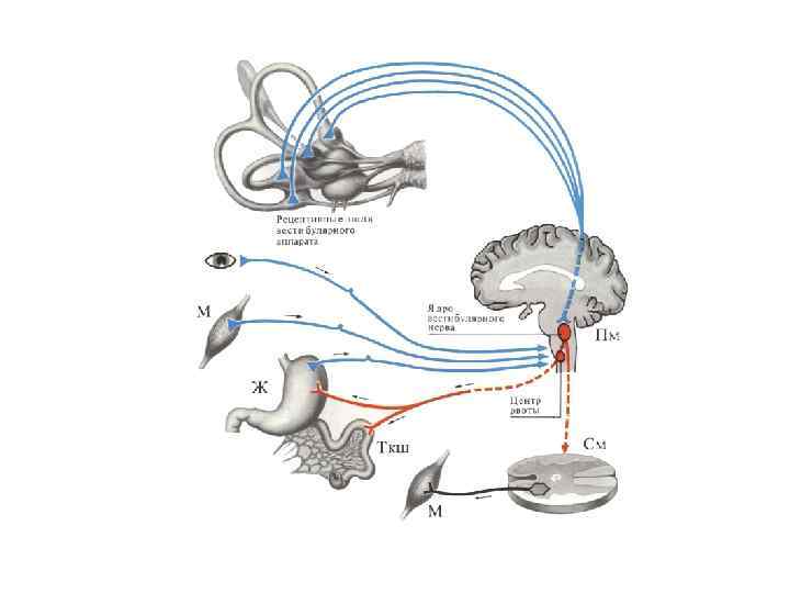 2. Өткізгіш бөлімі - тепе-теңдік жүйкесі (VIII жұп бас ми жүйке құрамында) сопақша ми - Швальбе, Бехтеров, Дейтерс, Манаков ядролары – жұлын – мишық - ортаңғы ми - вегетативтік орталықтар -торлы формация. 3. Ортаңғы бөлім - артқы орталық аймақтың төменгі жағы.