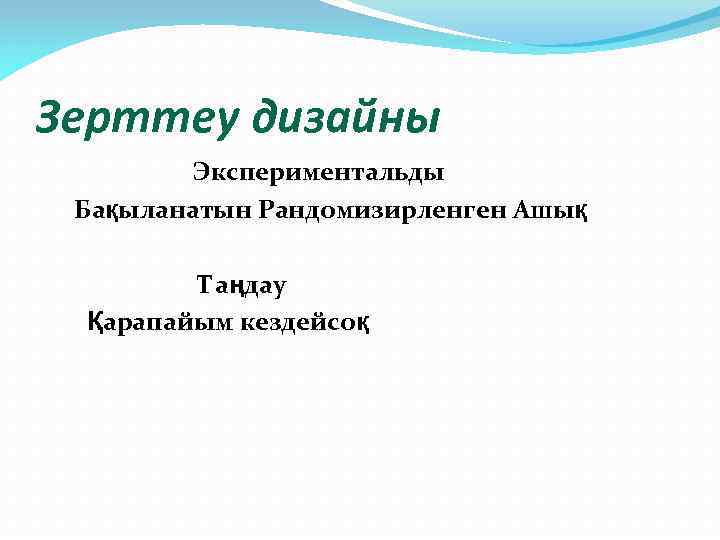 Зерттеу дизайны Экспериментальды Бақыланатын Рандомизирленген Ашық Таңдау Қарапайым кездейсоқ