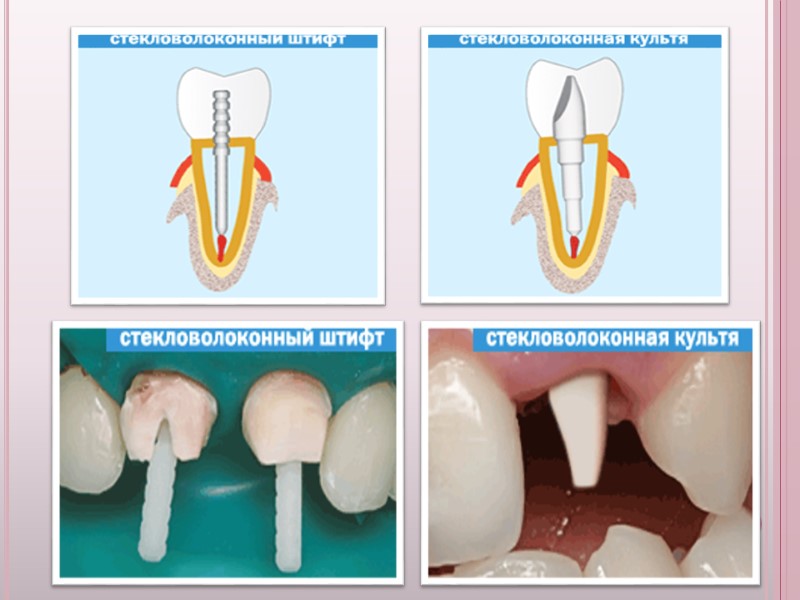 Фиксациялайтын цемент есебінде ине арқылы енгізілетін екі реттік қатаятын композитті қолданған дұрыс. Шыныталшықты штифт орнатылады. Композиттің полимеризациясын жүргізеді.