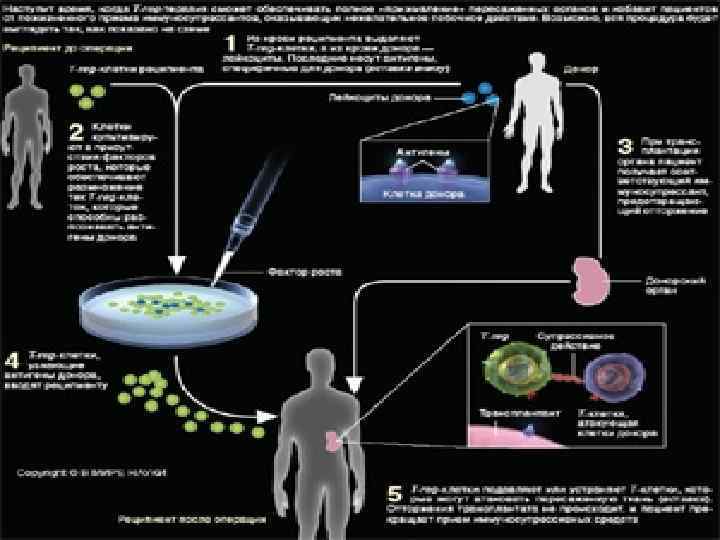Донорды таңдау. Сәйкес донор мен реципиентті таңдағанда ұқсас генотипті табу мүмкіншілігі 1: 640 000 -нан аспайды. Реципиенттің жасы 60 -қа дейін, ал донордың жасы 2 -ден 55 -ке дейін болу керек. Донорды таңдау иммунологиялық типтеуге негізделеді (АB 0, Rh – эритроциттердің антигендері және HLA – лейкоциттердің антигендері). Асқынулар. Трансплантаттың біріншілік жетіспеушілігі (1 -2 тәулікте); оның ажырауы (5 -10 тәулікте); трансплантациялық иммунитет – “ трансплантатқожайынға қарсы” реакциясы 7 -10 тәулікте дамиды.