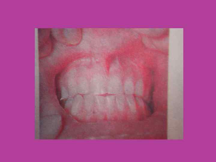 12. БЖА лимфа түйіндерінің Сипап тексергенде білінбейді немесе жағдайы тері асты лимфа түйіндері анықталады, сипап тексергенде ауырмайды, эластикалық консистенцияда 13. Терінің жағдайы Ақшыл- қызғылт түсті, ылғалдылығы мен тургоры айқын емес, таза 14. Қызыл ерін жағдайы Ашық-қызыл түсті, ылғалды, таза 15. Ауыз қуысының шырышты қабаты, ерін, тіл үзеңгілерінің және ауыз кіреберісінің тереңдігінің жағдайы 16. Тістің қатты тіндерінің жағдайы Ақшыл-қызғылт түсті, ылғалды, қозғалмалы, патологиялық элементтері жоқ. Ерін, тіл үзеңгілері қозғалмалы, эластикалық созылмалы. Ауыз қуысының кіреберісі орташа, тереңдігі (5 -10 мм) таяз 5 мм дейін, терең болса 10 мм жоғары. Кіреуке жылтырайды, сақталған, патологиялық түзілістер жоқ 17. Жақтардың арақатынасы Тістем физиологиялық 18. Тіс формуласы кп, КПУ, кп+КПУ=0 индексі Лимфа үйіндері мөлшерінде ұлғайған, сипап тексергенде ауырады, тығыз немесе тас сияқты консистенциялы, айналасындағы тіндермен қосылған Тері боз немесе ашық-қызыл, құрғақ, тургорлығы төмен. Бөртпелі элементтері бар, дақтар, папулалар, пустулалар, қабықшалар, қабырщақтанған тыртықтар, домбықпа, көпіршіктер Боз, құрғақ, қабыршақтанған, қабықшалар, тіліктер, көпіршіктер, ісіну Патологиялық элементтері бар Аз қозғалмалы немесе қозғалмайды Тістің кіреукесінде дақтар, штрихтер, сызықтар, тереңдетілген эрозиялар, төмпешіктердің ақаулары, пигментация Тістер мен жақтардың түйісуінің бұзылуы Тіс жегілік үрдістің белсенділігін анықтау