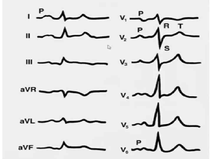 Оң жүрекшенің гипертрофиясы”P” pulmonale Үш жармалы қақпақшаның стенозы, қақпақша жеткіліксіздігі және өзге қақпақшалардың ақауы кезінде дамиды. ЭКГ белгілері: ІІ, ІІІ және а. VF-оң жақтық ауытқуларда: Р- тісшесі биік, үшкірленген. Биіктігі 2 -2, 5 мм жоғары, кеңеймеген. Сирек 0, 11 -0, 12 сек ұлғаюы мүмкін. Р- тісшесі симметриялы болып келеді.