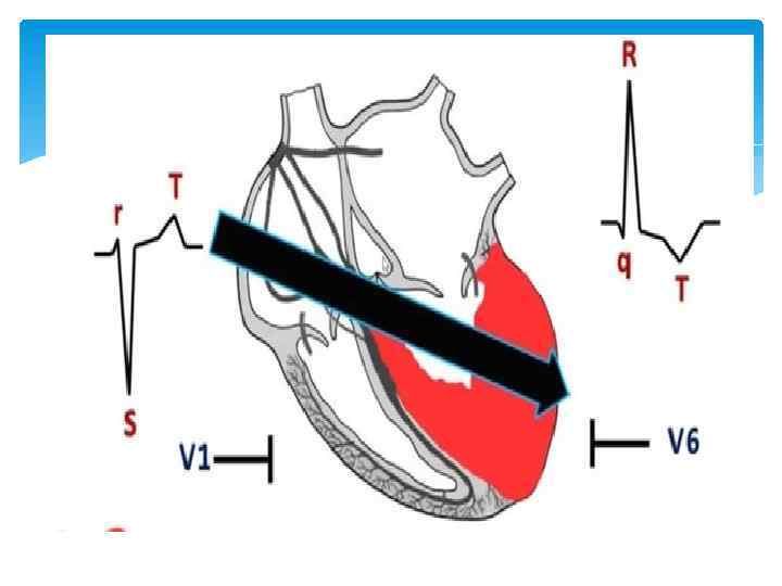 Сол қарыншаның гипертрофиясы R тісшелері V 5, V 6 >16 мм; R V 6> R V 5> RV 4 -негізгі, анық белгісі. S тісшелері V 1, V 2 тіркемелерінде терең>12 мм. RV 5(V 6)+S V 1>28 мм. T- тісшесі V 5, V 6 шықпаларда теріс. V 5 шықпасында ST-сегменті изолиниядан төмен, ал V 1, V 2 шықпаларда ST-сегменті изолиниядан жоғары орналасады. ЖЭО солға ығысқан.