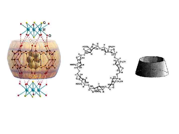 Типы комплексов включения • Полимолекулярный комплекс включения. «Хозяин» содержит в своей структуре решетку из «ограничивающих» молекул, формирующих канал ил полость, включающую молекулу «гостя» . • Макромолекулярный комплекс. «Хозяин» содержит в своей структуре трехмерную кристаллическую решетку, способную удерживать молекулу «гостя» . • Мономолекулярный комплекс или молекулярная инкапсуляция.