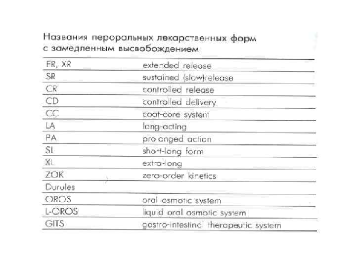 • Таблетки с контролируемым высвобождением включают таблетки плавающие и таблетки с микрокапсулами • контролируемым высвобождением Неконтролируемое удаление