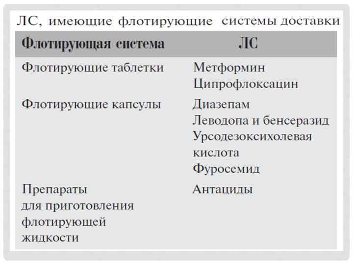 • Технология плавающих таблеток • На основе газообразующих веществ • На основе других веществ (например, гидроколлоидов)