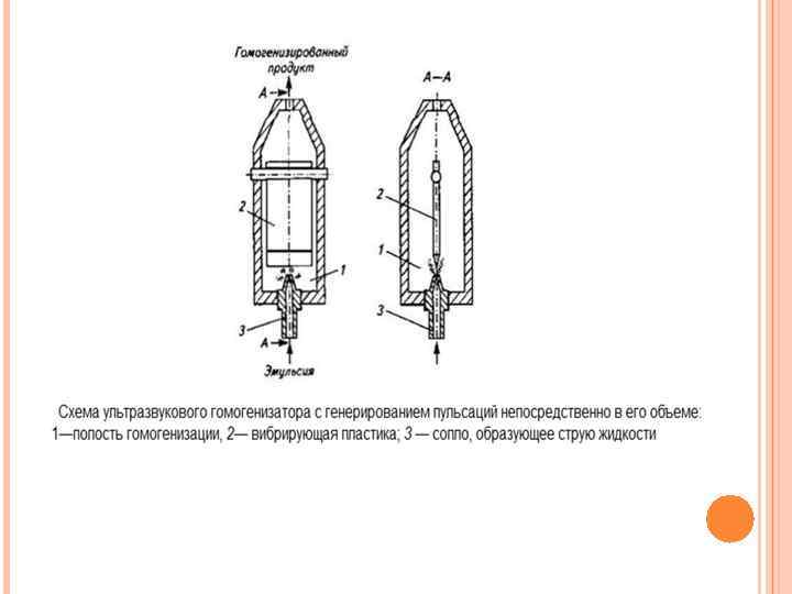 Поперечный разрез плунжерно-щелевой гомогенизатора. Макроэмульсия пропускается через очень маленькую щель гомогенизатора, чтобы получить микро- и нанокристаллы