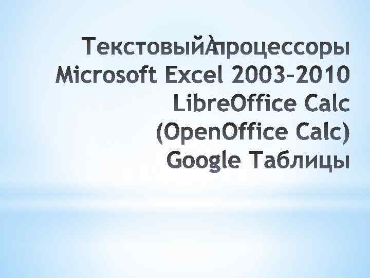 Для Libre. Office Calc Аналогично Microsoft Excel 2003