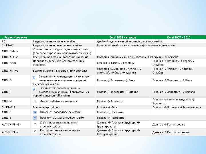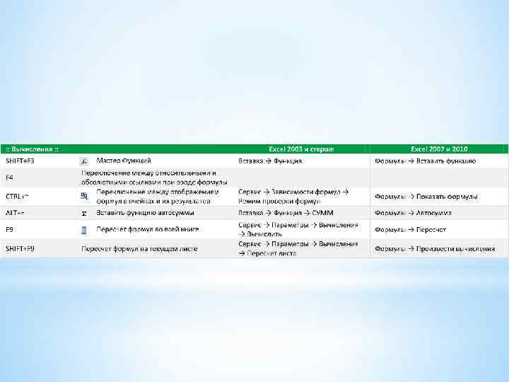Интерфейс Создание Настройки Вид, отображение Форматирование Условное форматирование Внешние данные SQL Лист Формулы Сводные таблицы Макросы