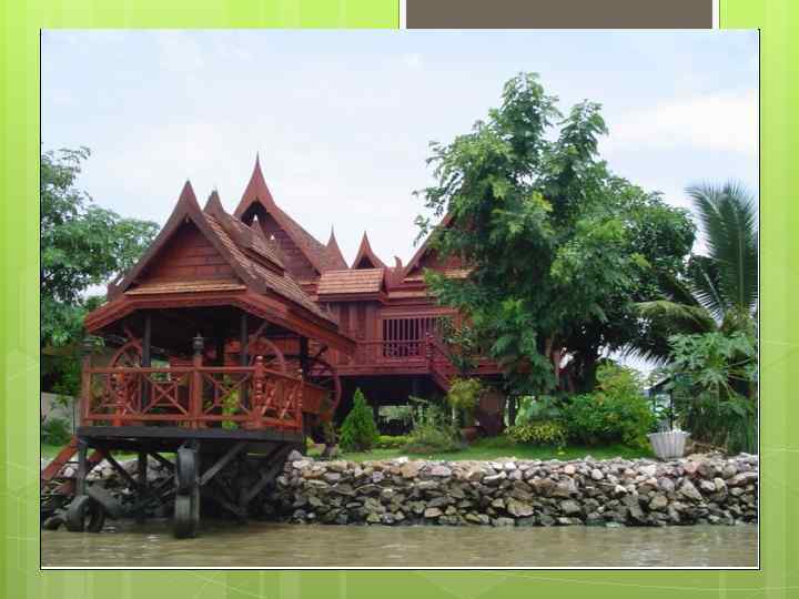 7. Архитектура До образования первого крупного тайского государства Сукхотай области Таиланда (а с XII в. и вся страна) входили в состав монских и кхмерских государств Бапном, Дваравати, Ченла и Камбуджад еша. После падения Камбуджадеши тайские государства Сукхотаи, Аютия и Бангкок стали основными наследниками камбоджийской культуры, поскольку в Камбодже не было условий для её развития[11]. Тайская архитектура берёт начало от камбоджийской. Все развитие тайской художественной культуры связано с буддизмом, который в тайском варианте включил в себя и некоторые индуистские мотивы. В монументальной архитектуре основные типы построек — ступа и храм. Тайские ступы восходят к монским и кхмерским прототипам (прасанг, прасат, чеди; приставка «пра» означает «святой» ). Основой развития храмов является вехан — здание с кирпичными или каменными колоннами и деревянной крышей. Наиболее ярким примером архитектурного творчества тайцев является комплекс храмов и Большого королевского дворца в Бангкоке. Строения, находящиеся на территории храмов, имеют различную форму и значение — это обычно святилища, залы для религиозных церемоний, библиотеки и школы. Стены могут украшать сцены из индуистского эпоса ( «Рамакиен» : Король Рама 2 перевёл Рамаяну на тайский язык) и изображения мифологических животных. Во дворе монастырей часто встречается священное дерево Бодхи. Здесь также представлены многочисленные скульптуры мифических существ, обладающих сверхъестественной силой и охраняющих монастырь.