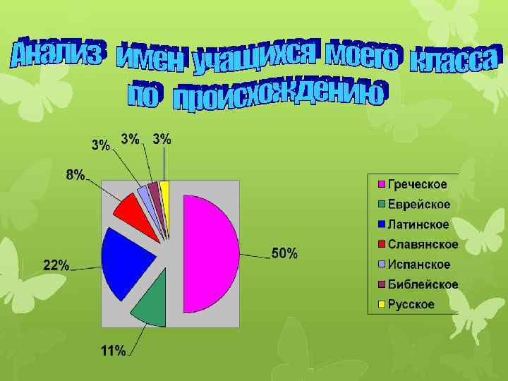 Вывод: Исследование разновидностей имен учащихся третьих классов нашей школы показало, что преобладают у мальчиков и девочек греческие варианты имен. Латинское происхождение на второй позиции.