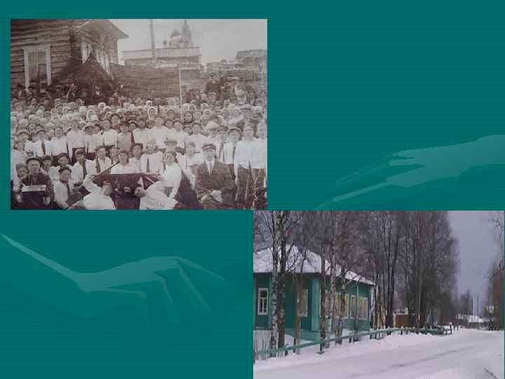 Если смотреть с той стороны, видно здание администрации Большелугского поселения. Этот дом построен был в 20 -ых годах 20 столетия специально для волисполкома, и он служит до сих пор. Мы посчитали количество окон, сравнили их форму и величину, форму крыши и вероятность того, видна ли была церковь. Куполов сейчас нет, около сельсовета высокие деревья скрывают церковь, но если мысленно провести прямую линию, Никольская церковь находится на том самом месте, как на первой фотографии
