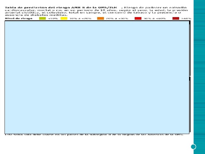 Tabla de predicción del riesgo Riesgo de padecer un episodio cardiovascular, mortal o no, en un periodo de 10 años.