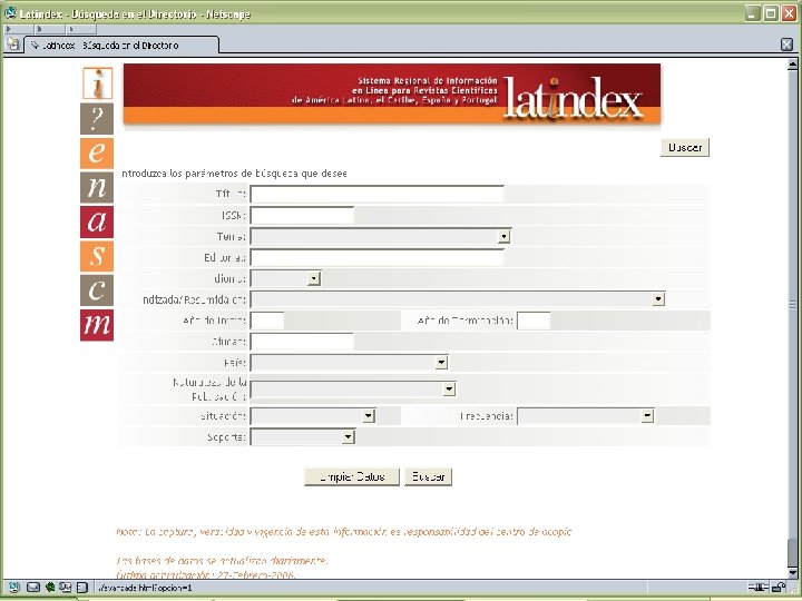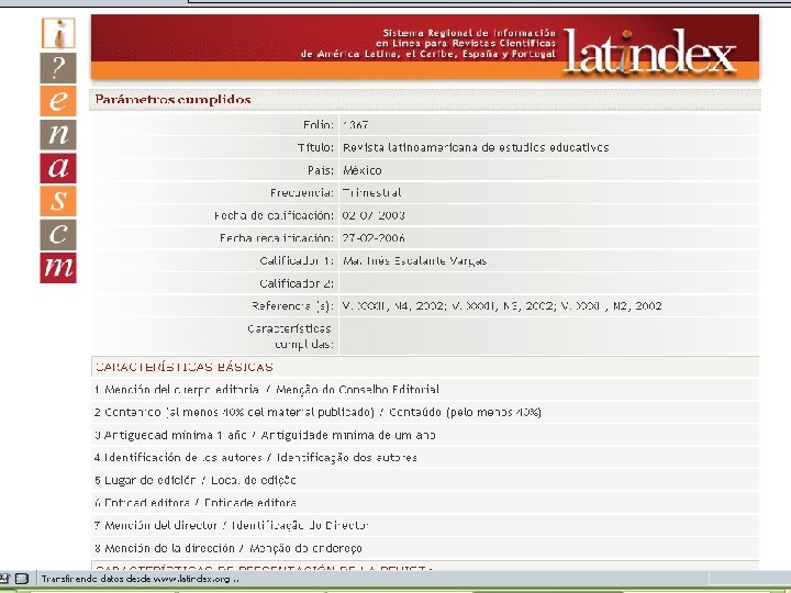 En línea en marzo de 2002 Revistas impresas Títulos seleccionados según criterios internacionales de calidad editorial Plantilla de criterios aprobada en noviembre de 2005 Revistas electrónicas En línea a partir de febrero de 2006