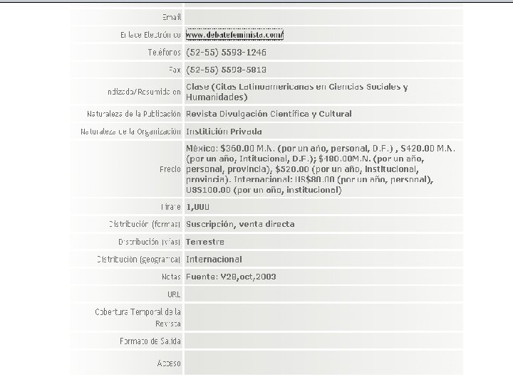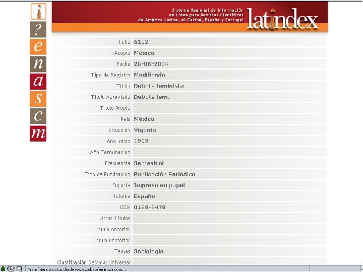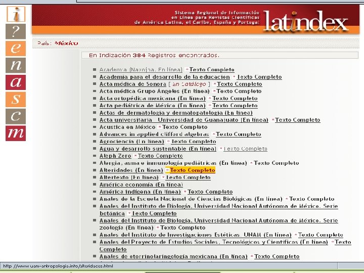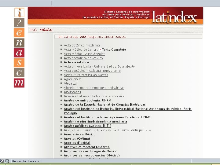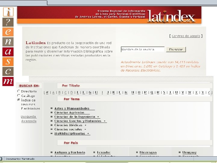 Bases de datos • Directorio de revistas • Catálogo de revistas • Índice de recursos electrónicos 15, 129 revistas 2, 334 revistas 2, 427 enlaces Datos de octubre 2006 www. latindex. org
