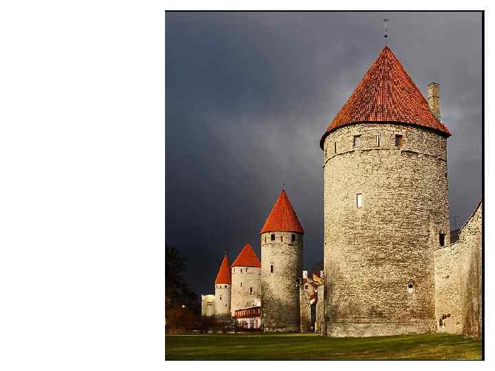 Таллинская городская стена, • Таллинская городская стена, укрепленная оборонительными башнями, к XVI веку превратилась в одно из самых мощных и надежных фортификационных сооружений Северной Европы. Средневековые укрепления, возведенные вокруг города к концу XIII века, превратили его в неприступную крепость. . К XVI столетию этим укреплениям практически не было равных по мощи во всей Северной Европе. Толщина городской стены с 46 мощными оборонительными башнями, достигала 3 м, высота – 16 м, а протяженность - 4 км. До настоящего время сохранилась часть стены длиной 2 км и 26 башен.