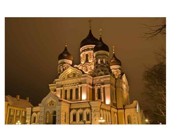 Собор Александра Невского • Собор Александра Невского крупнейший в Таллинне православный собор с величественными куполами. • Этот величественный, богато украшенный православный храм в смешанном стиле позднего историцизма был построен по проекту известного русского архитектора Михаила Преображенского в 1900 - в то время Эстония входила в состав царской России. Собор посвящен новгородскому князю Александру Невскому, одержавшему победу над тевтонскими рыцарями в ходе знаменитого Ледового побоища на Чудском озере 5 апреля 1242 года.