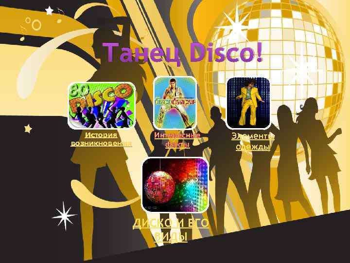 Танец Disco! История возникновения Интересные факты ДИСКО И ЕГО ВИДЫ Элементы одежды