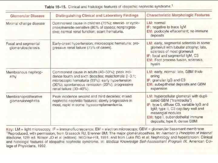 Патогенез Образующиеся в почках аутоантигены обусловливают выработку нефроцитотоксических аутоантител, которые потенцируют и расширяют масштаб повреждения почечной ткани, делая его диффузным. В пользу аутоаллергического патогенеза острого диффузного гломерулонефрита свидетельствуют: -развитие в среднем через 14 -16 дней после перенесенной стрептококковой инфекции -обнаружение в крови нефроцитотоксических аутоантител -обнаружение в капиллярах клубочков отложения комплексом «иммуноглобулины+антигены+комплемент С 3» Клинические признаки: отеки, гипертензивный синдром, брадикардия, мочевой синдром (олигоурия, протеинурия, гематурия) Больной М. , 15 лет. Диагноз: изменения паренхимы почек по типу диффузного нефротического сонографического синдрома (хронический гломерулонефрит).
