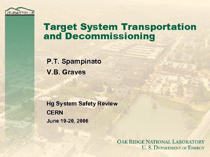 Target System Transportation and Decommissioning P. T. Spampinato V. B. Graves Hg System Safety Review CERN June 19 -20, 2006