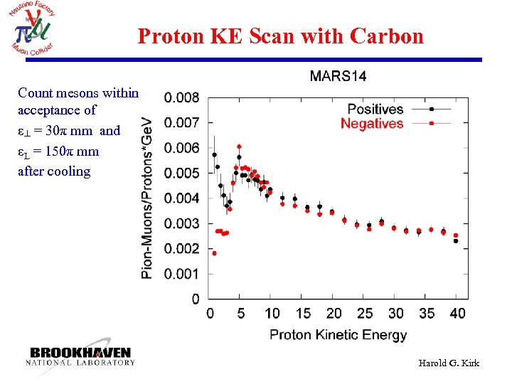 Proton KE Scan with Carbon Count mesons within acceptance of ε┴ = 30π mm and εL = 150π mm after cooling Harold G. Kirk