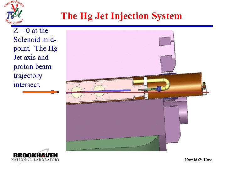 The Hg Jet Injection System Z = 0 at the Solenoid midpoint. The Hg Jet axis and proton beam trajectory intersect. Harold G. Kirk