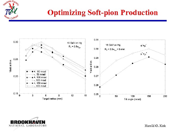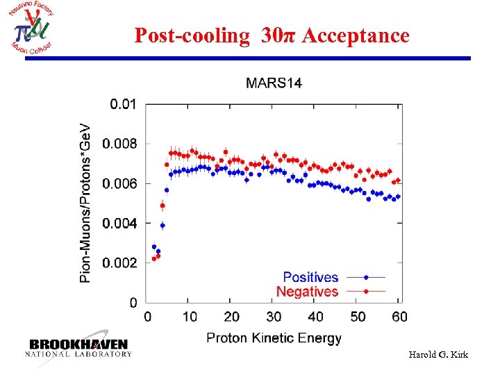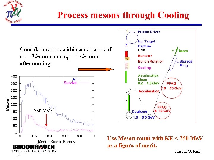 Process mesons through Cooling Consider mesons within acceptance of ε┴ = 30π mm and εL = 150π mm after cooling 350 Me. V Use Meson count with KE < 350 Me. V as a figure of merit. Harold G. Kirk