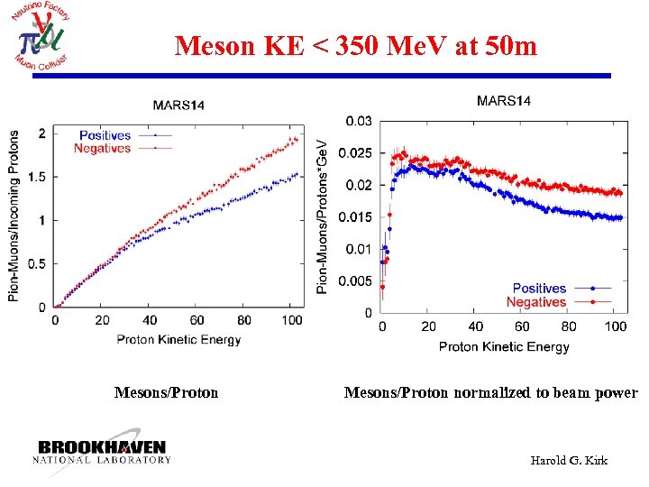 Meson KE < 350 Me. V at 50 m Mesons/Proton normalized to beam power Harold G. Kirk