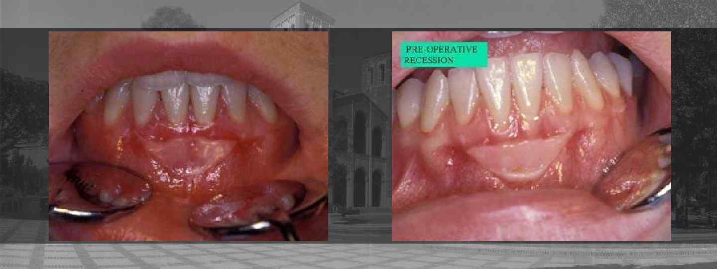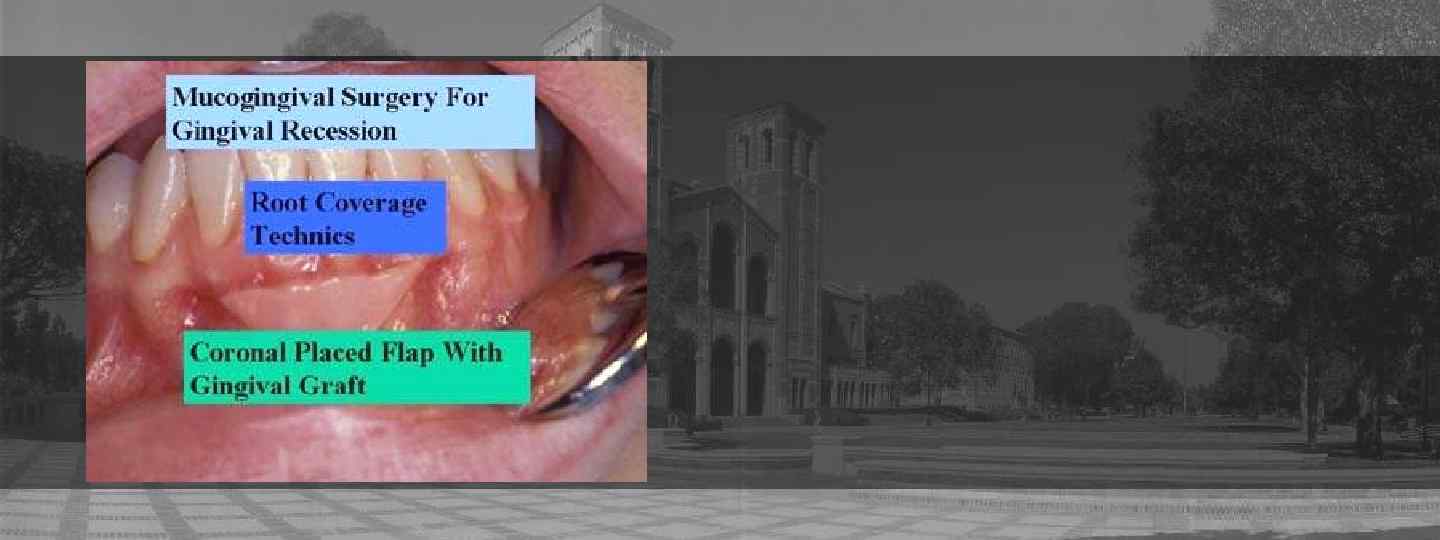 Treatment of Gingival Recession Esthetic Problem Yes No Adequate Keratinized Gingiva Yes 3 Month Evaluation for Progression Adequate Keratinized Gingiva Yes No No Gingival Graft for Root Coverage or Gingival Graft and Coronally Repositioned Flap Recession More than 2 mm. Yes No Coronally Repositioned Semi-Lunar Flap Adequate Adjacent Donor Site Yes Lateral Sliding Flap No Adequate Palatal Donor Site Yes Connective Tissue Graft No Coronally Repositioned Flap with Membrane or Emdogain