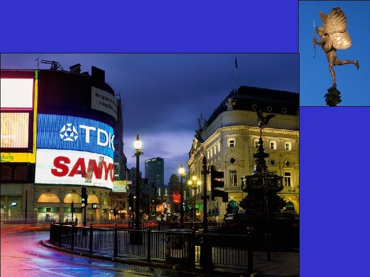 Piccadilly takes it name from a 17 th century frilly collar called a picadil. A dressmaker grew rich making them and built a house in the vicinity. For many years, Piccadilly Circus - at the junction of five busy streets - has been a famous London Landmark. At its heart and backlit by colorful electric displays is a bronze fountain topped by a figure of a winged archer. The statue is popularly called EROS, the pagan god of love, but it was in fact designed in the 19 th century as a symbol of Christian charity - a monument to Lord Shaftesbury, a philanthropist. The famous statue of Eros in Piccadilly Circus is one of the symbols of London. It was originally called the Shaftesbury Monument, having been erected as a memorial to the philanthropist Lord Shaftesbury. The actual figure rises above a fountain, which is made in bronze, but Eros is made out of aluminum, at that time a rare and novel material.