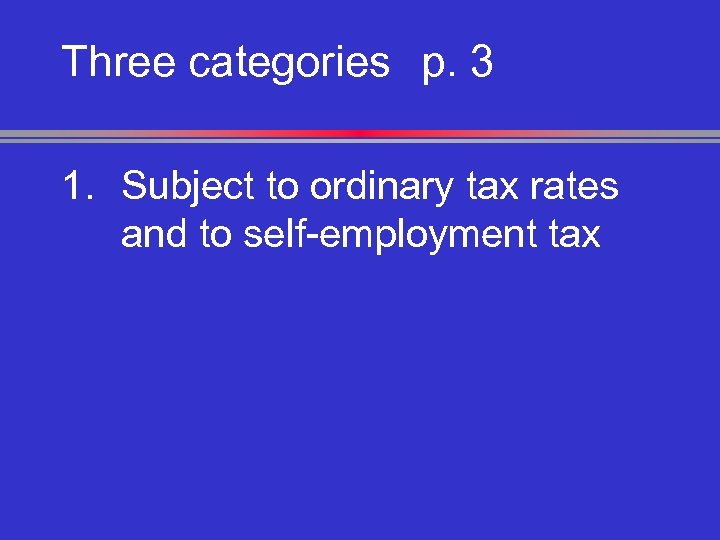 Three categories p. 3 1. Subject to ordinary tax rates and to self-employment tax