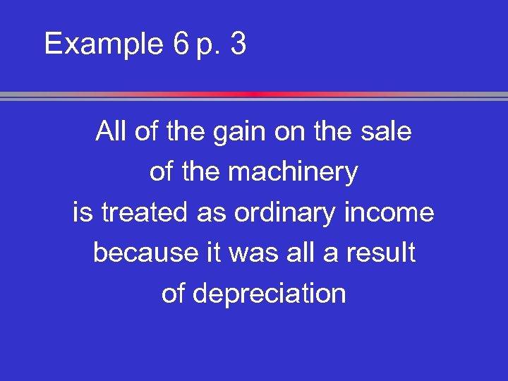 Example 6 p. 3 All of the gain on the sale of the machinery is treated as ordinary income because it was all a result of depreciation