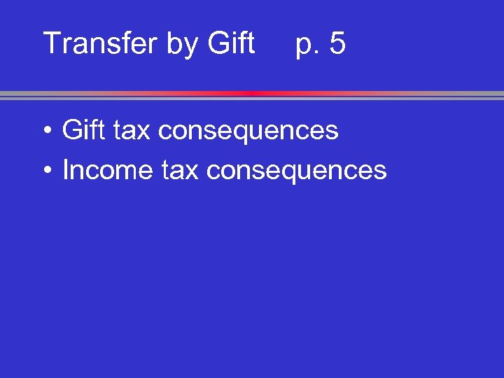 Transfer by Gift p. 5 • Gift tax consequences • Income tax consequences