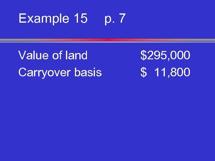 Example 15 Value of land Carryover basis p. 7 $295, 000 $ 11, 800