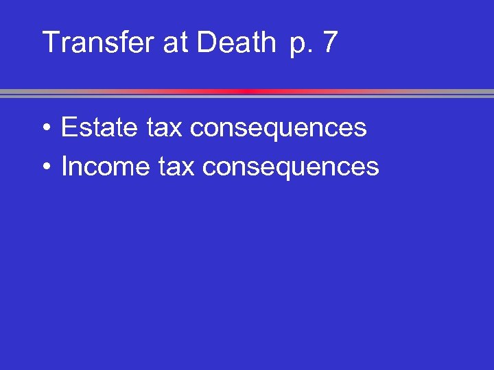Transfer at Death p. 7 • Estate tax consequences • Income tax consequences