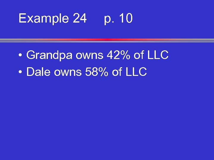 Example 24 p. 10 • Grandpa owns 42% of LLC • Dale owns 58% of LLC
