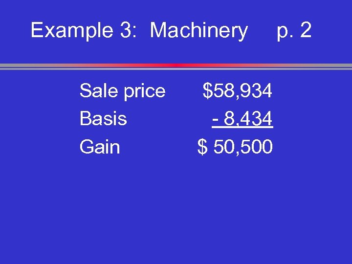 Example 3: Machinery Sale price Basis Gain $58, 934 - 8, 434 $ 50, 500 p. 2