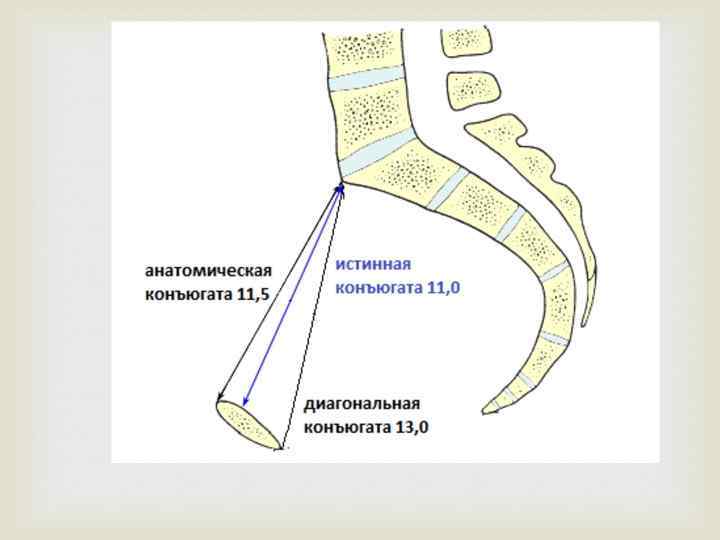 Измерение размеров женского таза 1. Distantia spinarum 25 -26 см 2. Distantia cristarum 28 -29 см 3. Distantia intertrochanterica 30 -31 см 4. Conjugata externa 20 -21 см