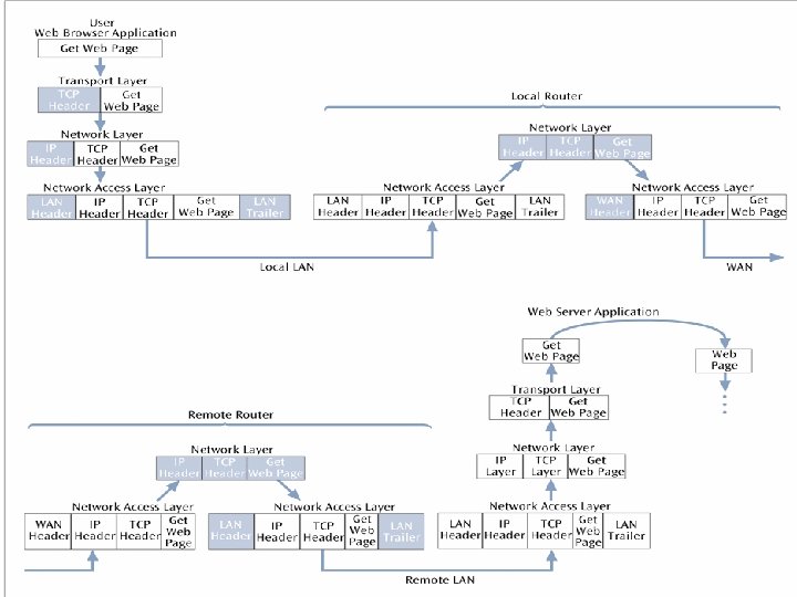 OSI vs. TCP/IP 1. Uygulama Katmanı (Application Layer) 2. Taşıma Katmanı (Transport Layer) 3. Ağ Katmanı (Network Layer/Internetwork Layer) 4. Fiziksel Katman (Network Access Layer/Link and Physical Layer) Uygulama Sunum Oturum Taşıma Ağ Veri İletim Fiziksel OSI Telnet FTP DNS Uygulama Taşıma Ağ Fiziksel TCP/IP TCP ICMP UDP IP ARP LAN WAN SLIP ve PPP