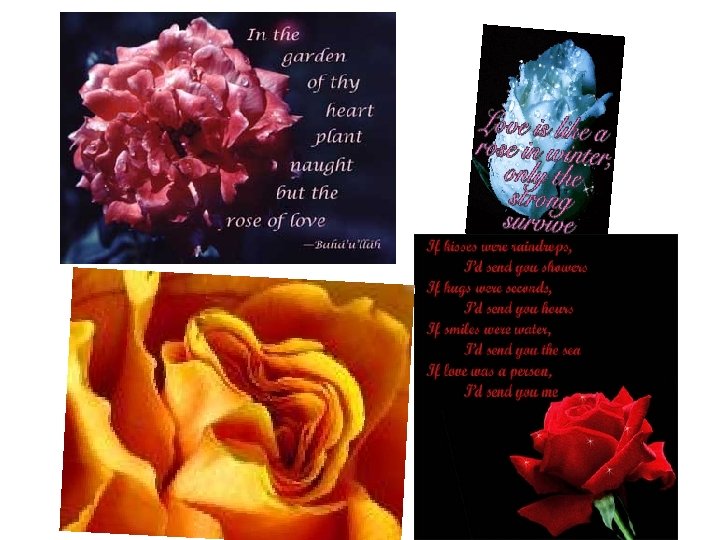 The Rose (Bette Midler) 1. GW. What do you associate the rose with? 2. Fill in the poem with the right rhymes. What A Rose Can Say (Margie Driver) A rose can say I love you and want you to be mine, A rose can say I thank you for being so very kind, A rose can say congratulations, whatever the occasion may be, A rose can say I miss you and wish …………… , A rose can say I'm sorry if …………… , A rose can say get well soon, May God bless you today, A rose can say I wish you happiness, and ……………. A rose can say farewell when …………. , A rose can say hello, I'm thinking of you today, There's just so many wonderful things that a rose can say, A rose can say goodbye when a loved one is laid to rest, No matter what there is to say, ……………. I've hurt you in any way the best for you each day someone goes away a rose can say it best you were here with me