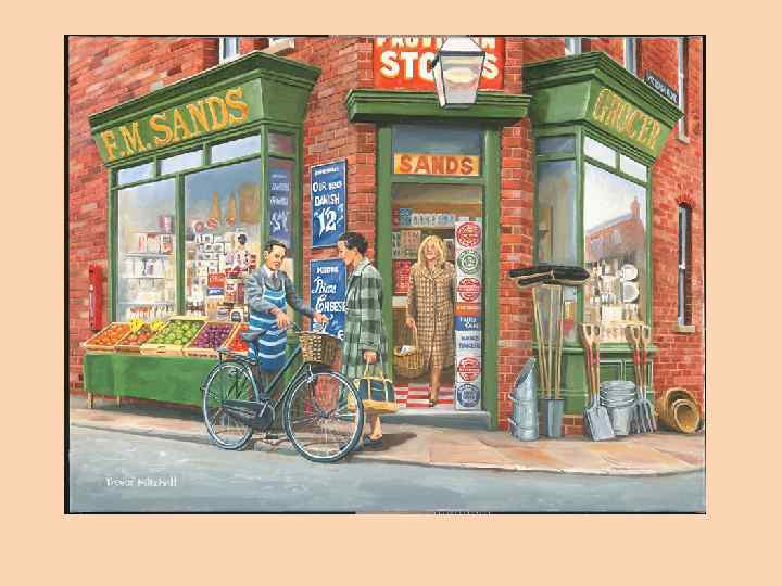 Think about the picture • What type of shop do you see in the picture? • A corner shop - a department store • A supermarket - a mall • What country do you think the photo was taken in? • What are the people talking about? • Describe the clothes they are wearing Use your imagination (the questions are like a plan for your monologue) • Are the people coming into the shop or out of the shop? Are they married? Do they always go shopping together? Describe in detail, the shop and the things it sells. What were these people doing before? Have they come to look for a present for someone? Do they need a trolley? What is the atmosphere in the shop? Are the sales on? Might there be queues in some departments? Is the man as interested in the process of shopping as the woman? What might they do when they have finished their conversation? Talk to a partner and find out • How he/she feels about the shop he/she sees • Whose duty it is to do the shopping in their family • If he/she likes to go shopping • What types of shops he/she likes to go to Talk to another partner • One of you is a shop assistant. Act out a conversation between a shop assistant and: • A customer looking for a pair of suede shoes in size 38 • An old lady looking for a pair of comfortable slippers • A young lady looking for a silk blouse to match the velvet skirt • In each case ask a question beginning: • Are you being served? Are you being attended to? Can I help you? What about you • When did you last go shopping? What was the reason for going there? • It is your duty. - your parents asked you - you need something • You looked for a gift to go to a birthday party