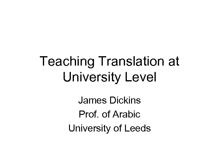 Teaching Translation at University Level James Dickins Prof. of Arabic University of Leeds