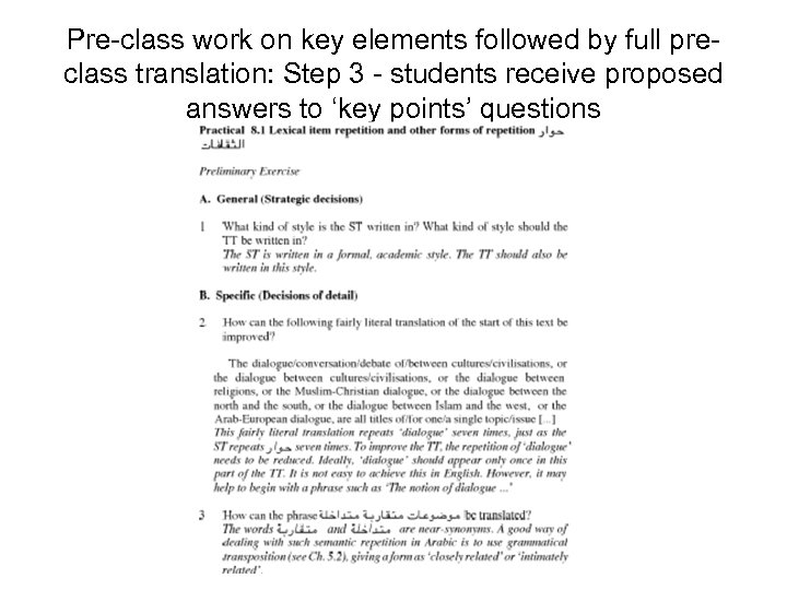 Pre-class work on key elements followed by full preclass translation: Step 3 - students receive proposed answers to ‘key points’ questions