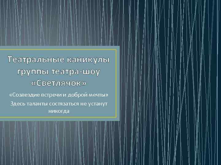 Театральные каникулы группы театра-шоу «Светлячок» «Созвездие встречи и доброй мечты» Здесь таланты состязаться не устанут никогда