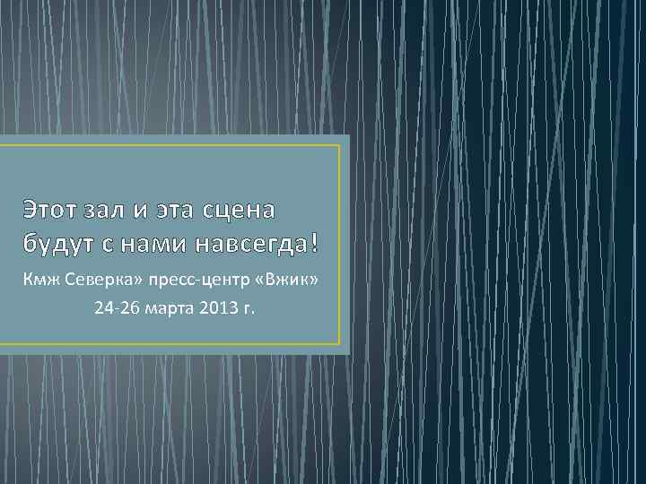 Этот зал и эта сцена будут с нами навсегда! Кмж Северка» пресс-центр «Вжик» 24 -26 марта 2013 г.