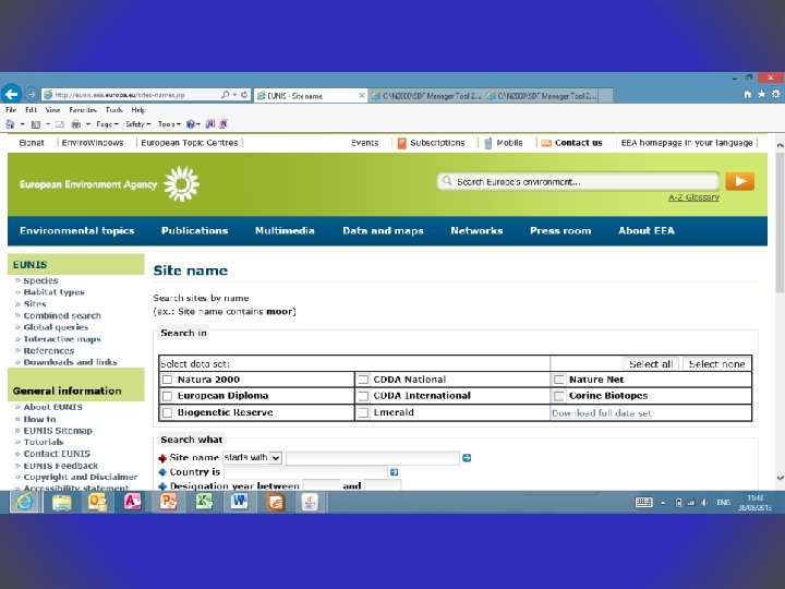 European Diploma Ø New version will be available in autumn Ø To be included in EUNIS Sites module and WDPA Ø Links from Co. E webpage to Information Form available in EUNIS (see example)